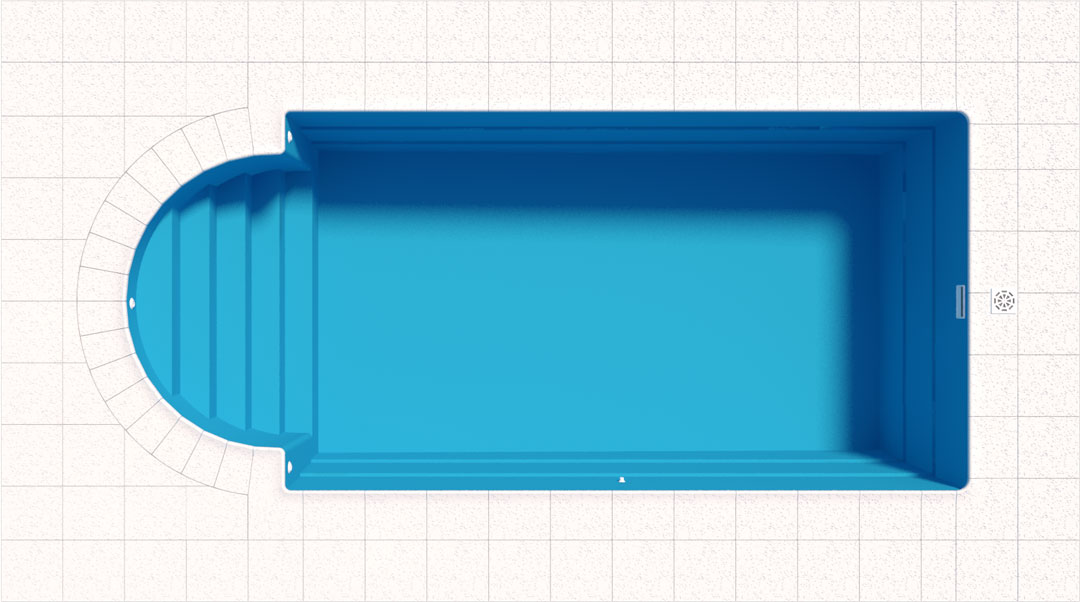 Diseño clásico y distinguido con arco romano. Escaleras independientes del área de nado. Una piscina excelente para embellecer tu parque.