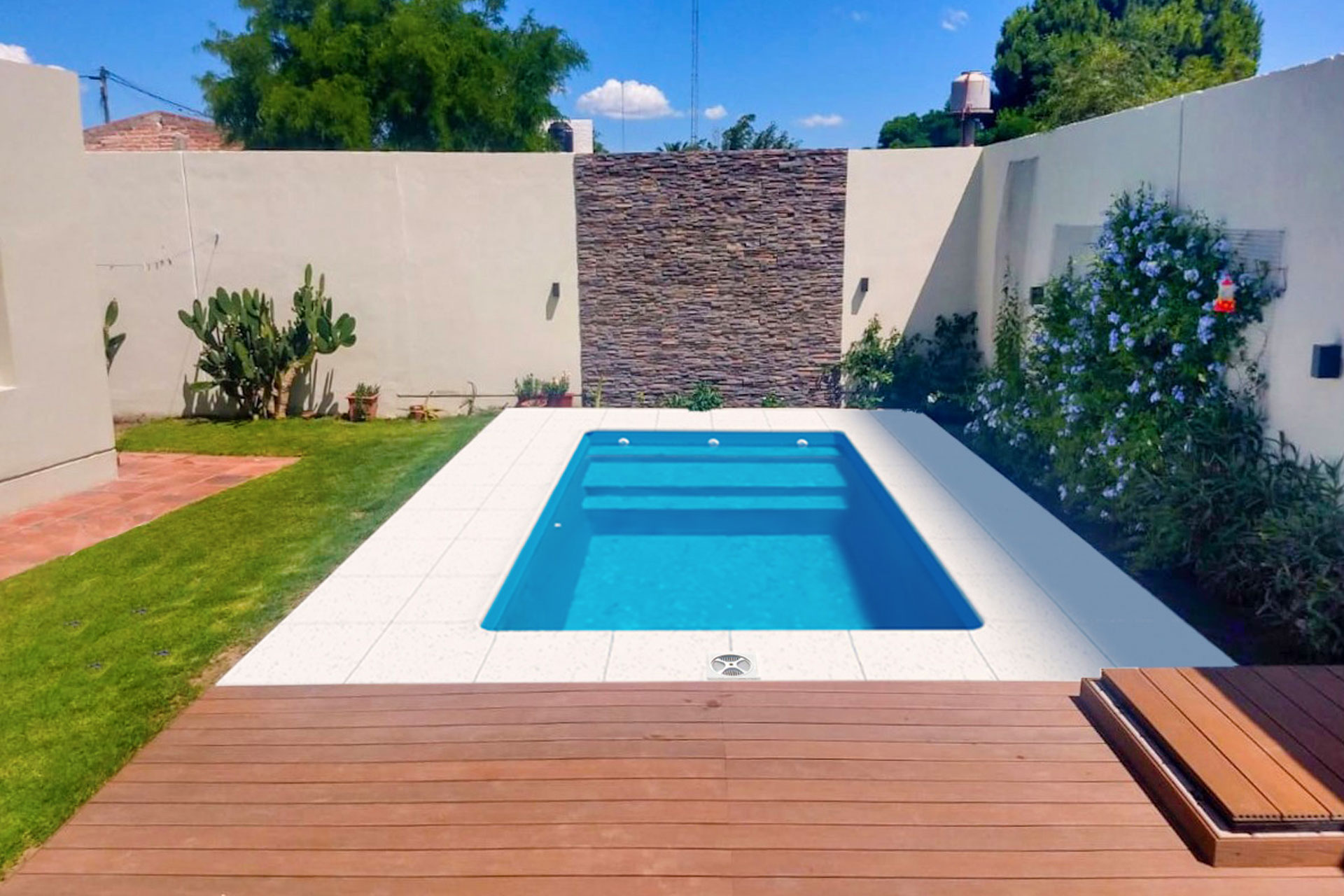 Merecés una piscina con descanso más allá del espacio disponible. El modelo Cuarzo Rosa se adapta a la medida que necesitás.