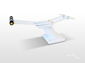 La base trampolín para plataforma de salto son fabricadas en acero elástico y terminación blanco mate.